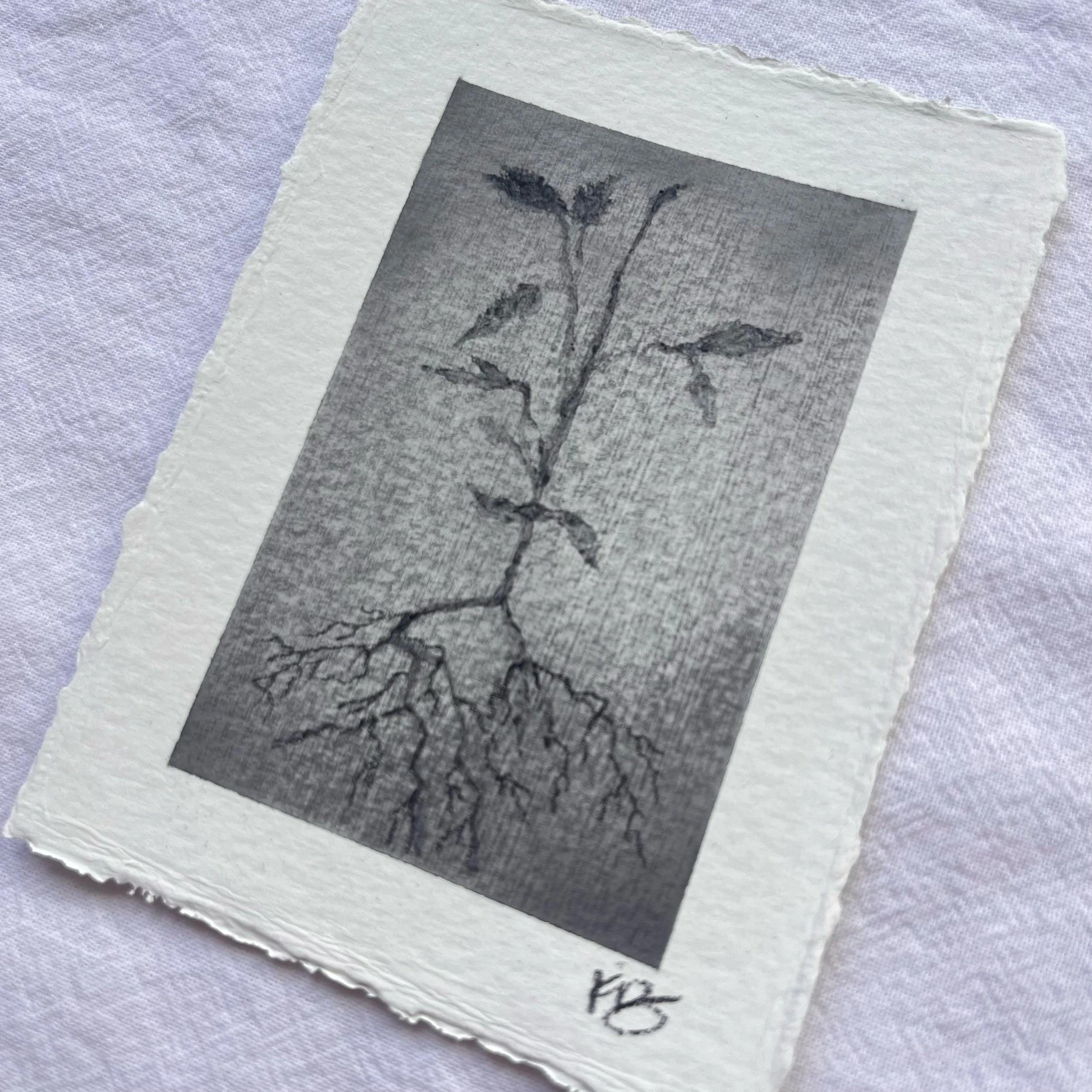 Original charcoal landscape on Strathmore watercolor paper with deckled edge. Borders measure approximately 3” x 4” and art measures approximately  2” x 3”. Coated with fixative for preservation. Slight variance in size may occur due to hand-torn paper. Signed on front with title on reverse.